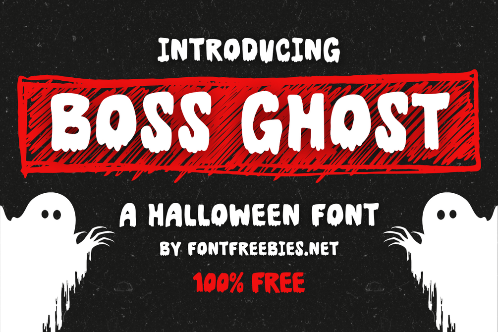 Boss Ghost is a bold, playful Halloween font that adds a touch of spooky fun to any design. Perfect for Halloween event flyers, invitations, and social media graphics, this free font features thick, rounded letters with a ghostly vibe.